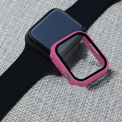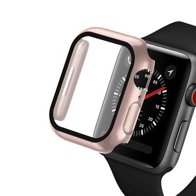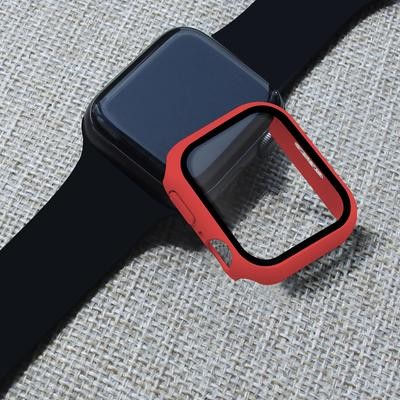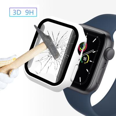 زجاج مقسى + حالة من سلسلة Apple Watch 7/6/5/4/3/2/1/SE 38MM 40 41 مم 42 44 مم 45 مم 45 مم