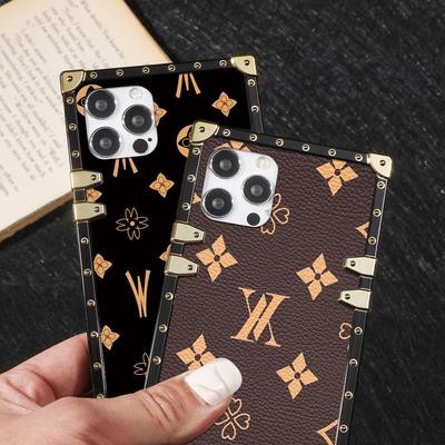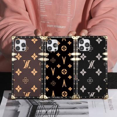 الأزياء الفاخرة الفاخرة المربعة بالهاتف الجلدي المربع لأجهزة iPhone 13 12 Mini 11 Pro Max الهندسية