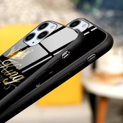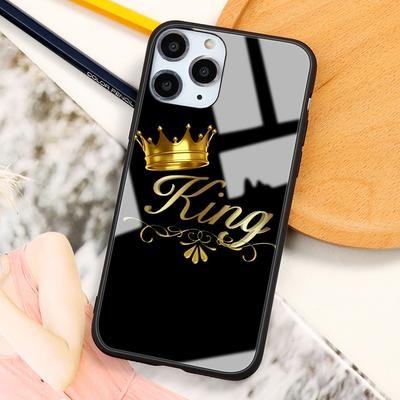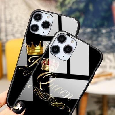 زوجين من كوين كينج كراون الماس المجدٍ للهاتف الزجاجي لـ iPhone 13 12 11 SE 20