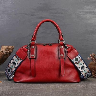 سعة كبيرة من الجلد الأصلي غير الرسمي حقيبة نسائية خمر ناعم من الجلد الحقيقي