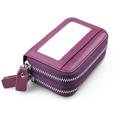 موضة نساء أصلي بطاقة الائتمان الجلدية محفظة سعة كبيرة السوستة مزدوجة أنثى